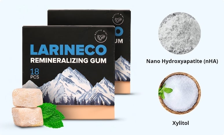 Unlike ordinary gum, Larineco doesn't just freshen your breath. With every chew, it actively repairs cavities, restores tooth enamel, whitens teeth, and fights bacteria — giving you a healthier, brighter smile without changing your routine.